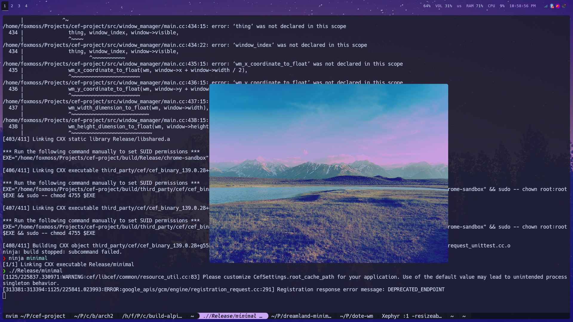 To initiate, CEF just sends the browser X11 window id down to the window manager and we can place it in the back and fullscreen it to make it appear as if the browser is our wallpaper.