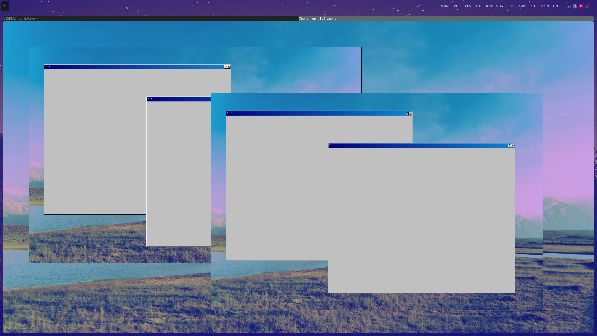 To give credit where credit is due, the window manager is largely based on x-compositing-wm by obiwac then rewritten by hand in C++ with a modern semi error tolerant style. The original project is slightly broken in some areas but it provided a good basis on how X11 can interact with OpenGL.